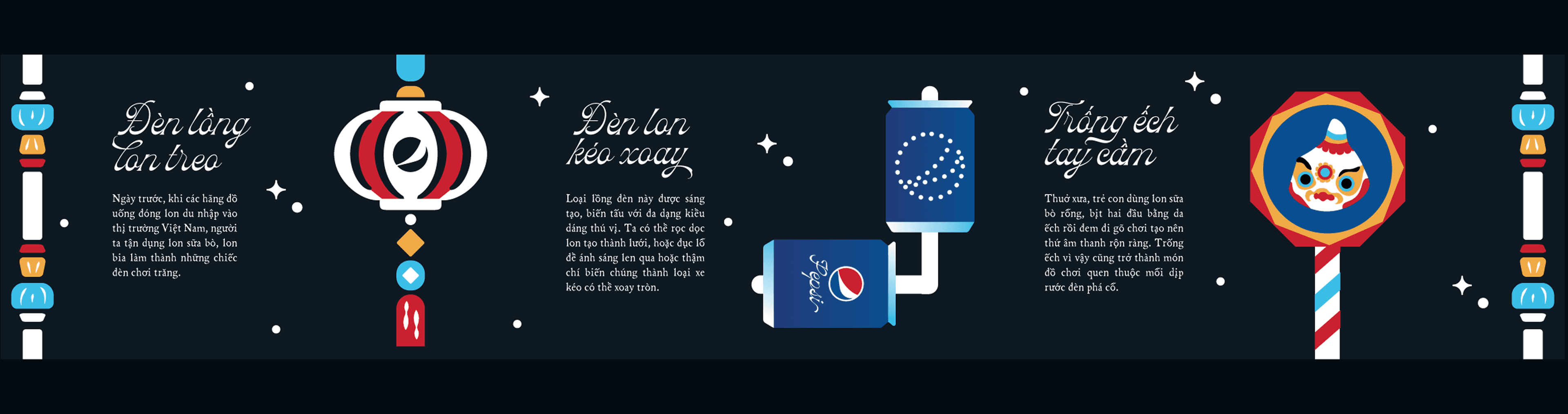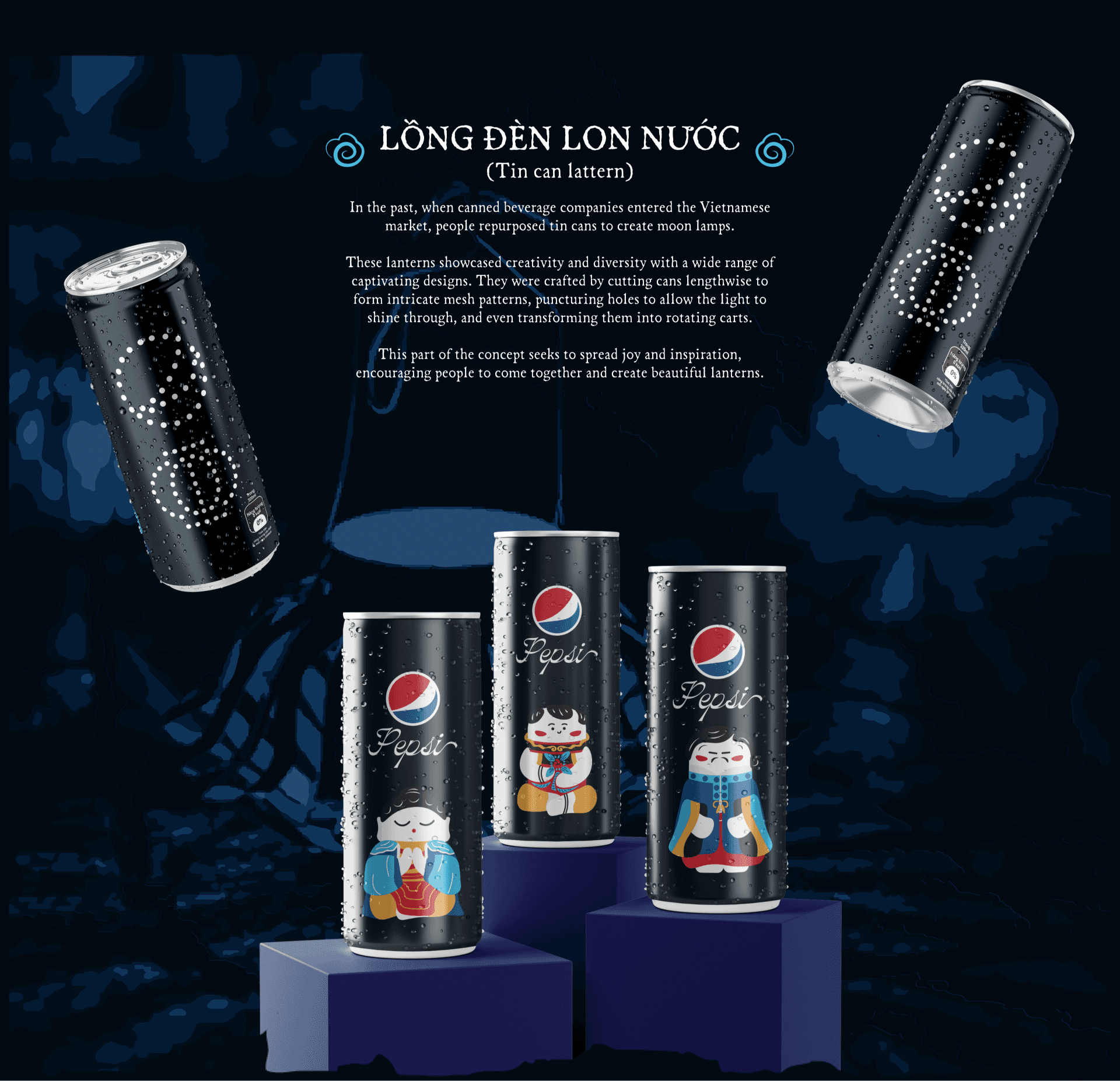 The Insight: Preserving the Stream of Memories In the rapid pace of modern life, traditional handcrafted toys such as Clay Crackers (Phỗng đất), Frog Drums, or lanterns made from recycled cans are gradually being replaced and fading from the memories of today’s children. This shift creates a cultural gap where the simple yet profound joys of past generations are no longer present in the contemporary childhood experience. The Mission The core objective is to introduce these cultural symbols into a dynamic international brand like Pepsi to act as a meaningful bridge. Through this collection, modern children gain the opportunity to play with and appreciate the beauty of folk heritage, thereby preserving and spreading these cultural values into the future. Marketing Strategy: Driving Demand Each can is designed to be more than just a beverage, serving as a vital piece of a larger collection. The "repurpose into a lantern" feature and the collectible folk toy illustrations encourage customers to purchase in combos or repeat their buying behavior to complete their own unique lantern procession set.